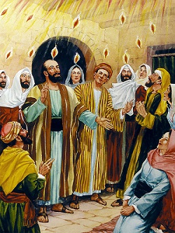 Dans Marc 16:17, le Christ est cité comme disant: « Ils parleront en de nouvelles langues », se référant aux miracles à accomplir par les disciples après son ascension. L’accomplissement de cette promesse est venu quelques jours plus tard à la Pentecôte. Dans Actes 2: 4, il est rapporté que le jour de la Pentecôte « ils furent tous remplis du Saint-Esprit et commencèrent à parler en d’autres langues, comme l’Esprit leur donna de s’exprimer ». Il y avait des Juifs à Jérusalem de «toutes les nations sous le ciel», et «chacun les entendait parler dans sa propre langue».